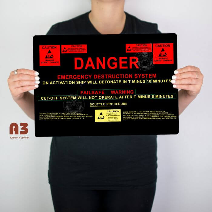 Dieses von Aliens inspirierte Metallschild ist eine lebensechte Nachbildung der Nostromo-Selbstzerstörungssequenz, wie sie im erschreckenden ersten Alien-Film von Ridley Scott zu sehen war!