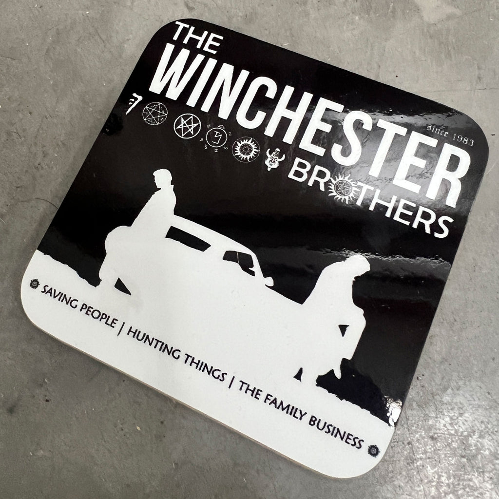 This Supernatural inspired coaster Measures 9cm x 9cm and comes with a cork backing.