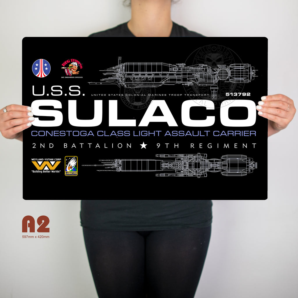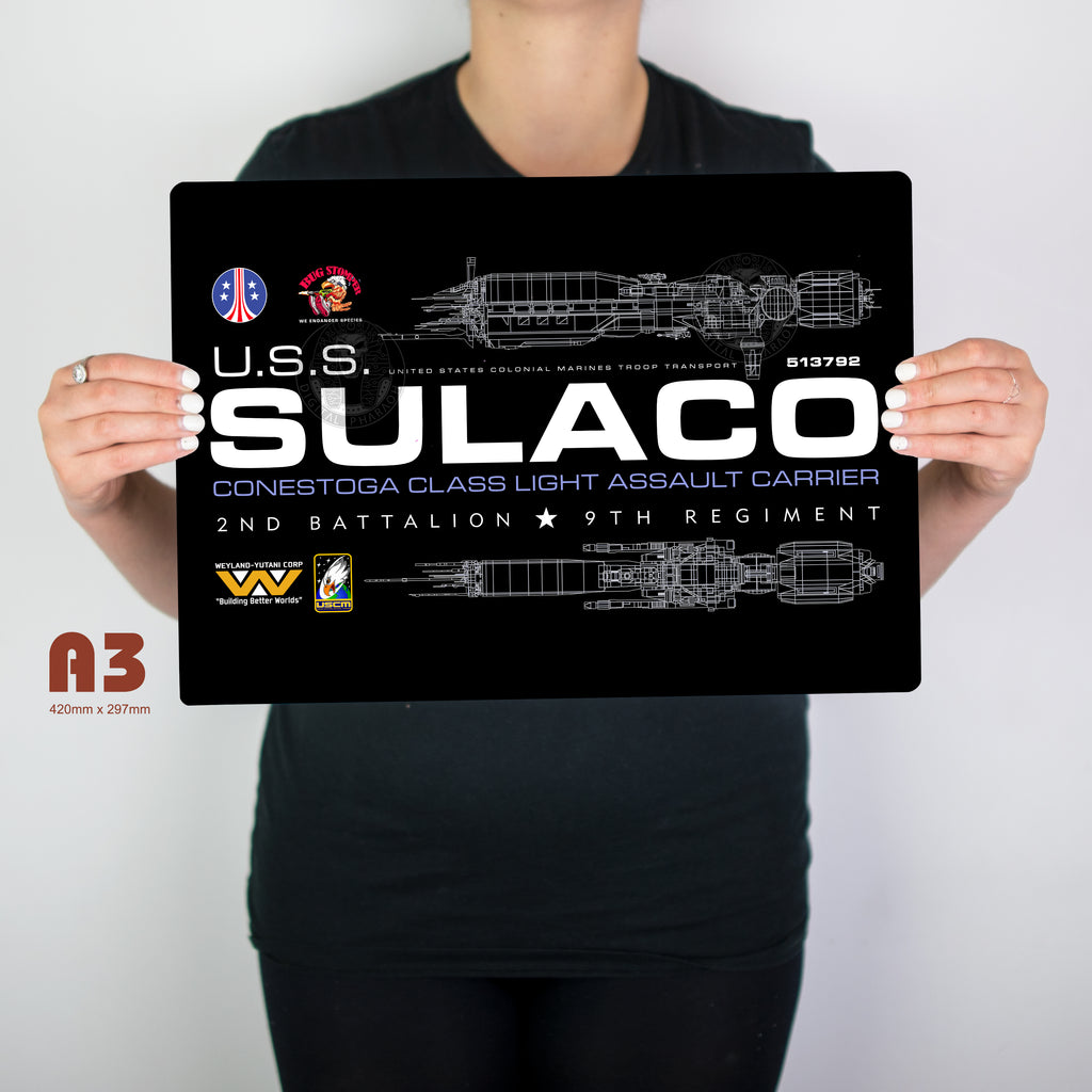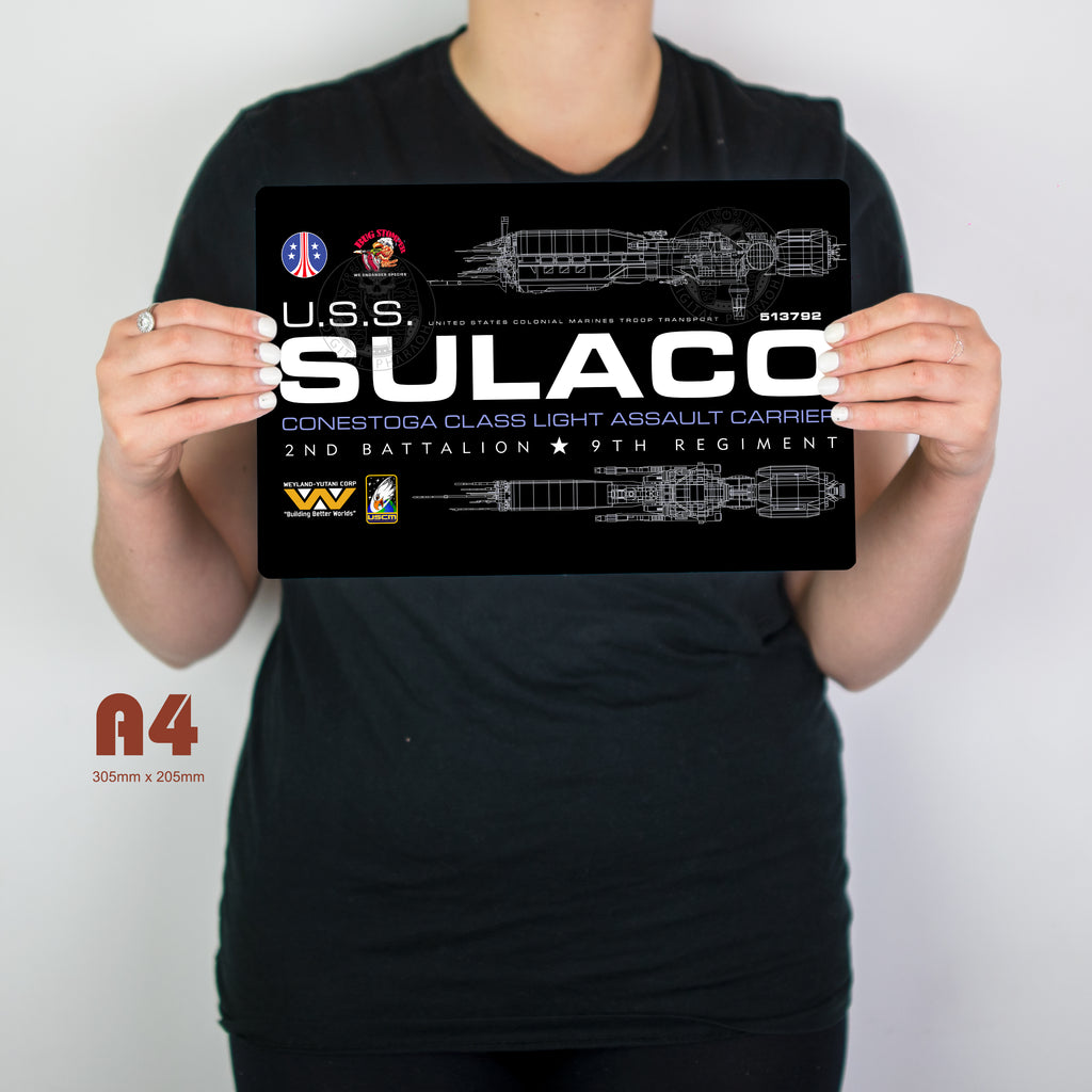 This Aliens inspired metal sign, features the might Conestoga Class vessel in classic schematic form!