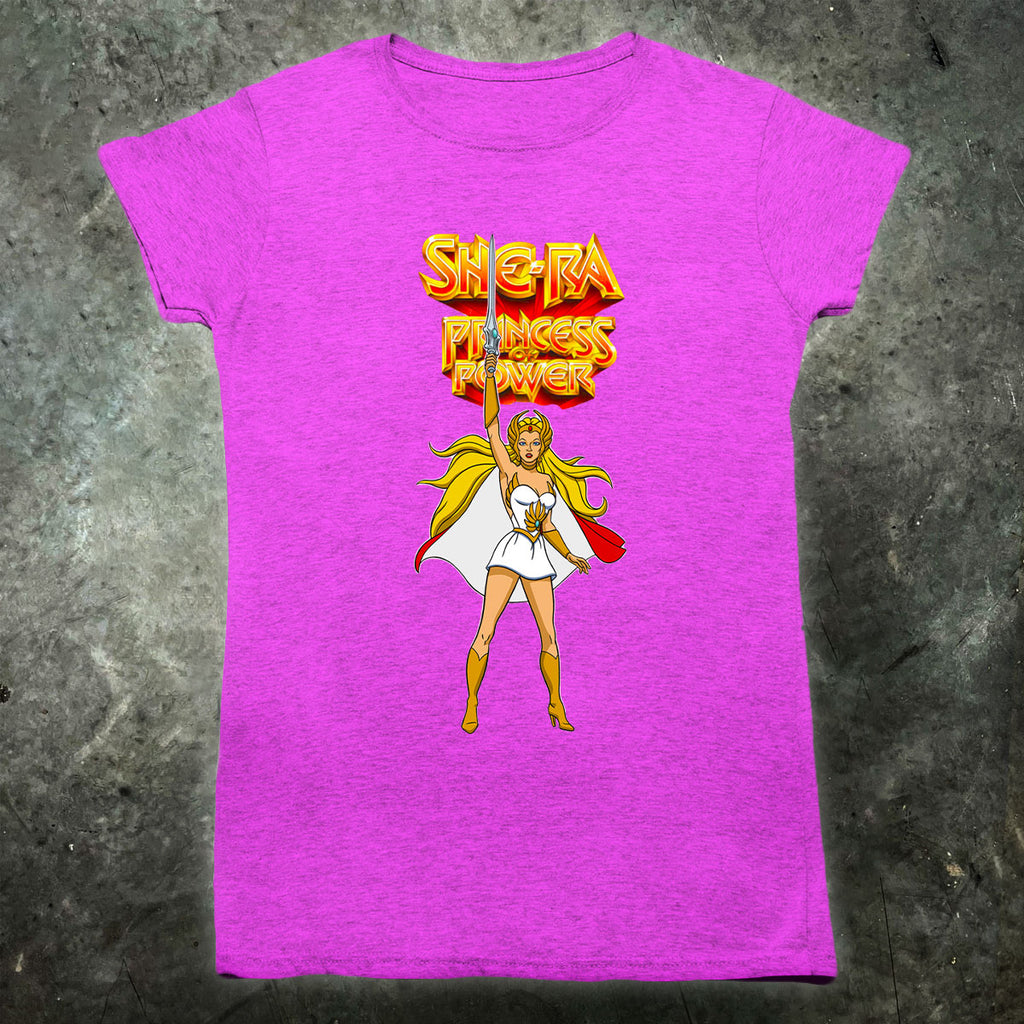 The true princess of power, and she is seen complete with sword on this epic retro ladies t shirt.
