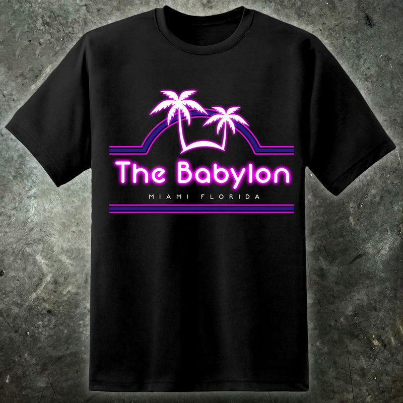 You just have to drop by if you are ever in 80s Miami, but if you're not, and you value your life - then this is a far safer way to own the t shirt...