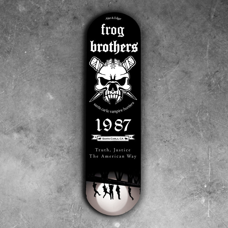 This Frog Brothers Inspired skateboard artwork is an epic addition to any man or woman cave!